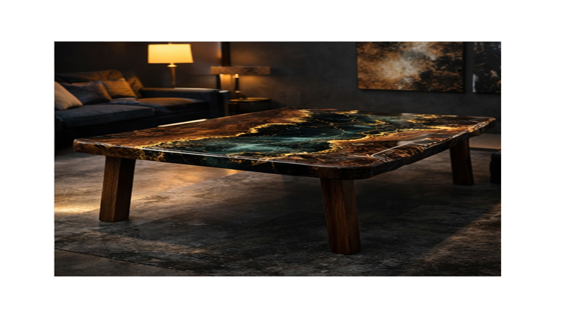 Each resin vein is hand-poured and artistically layered to achieve depth and movement, while the warm wood grain frames the composition with organic balance. Finished with a flawless, glass-smooth surface and supported by solid wood legs, this table delivers understated strength with unmistakable luxury.
