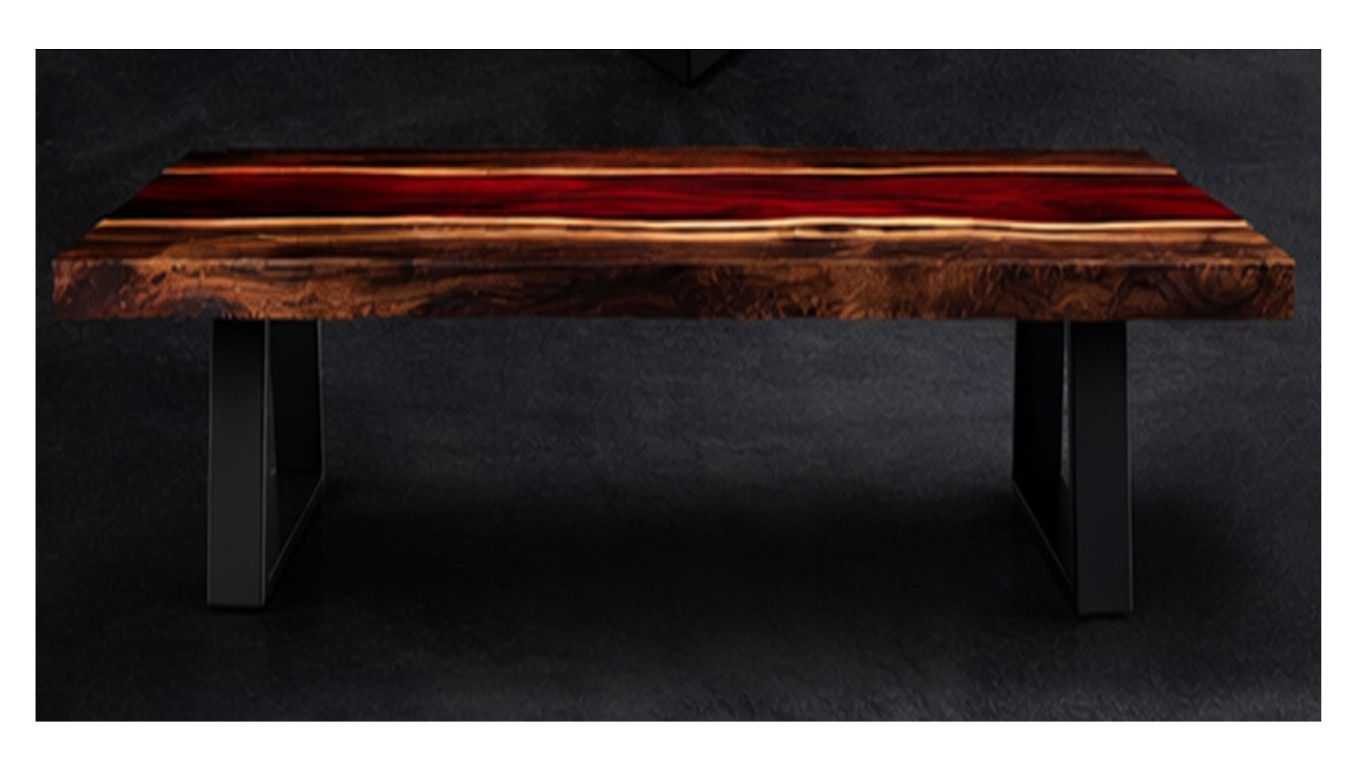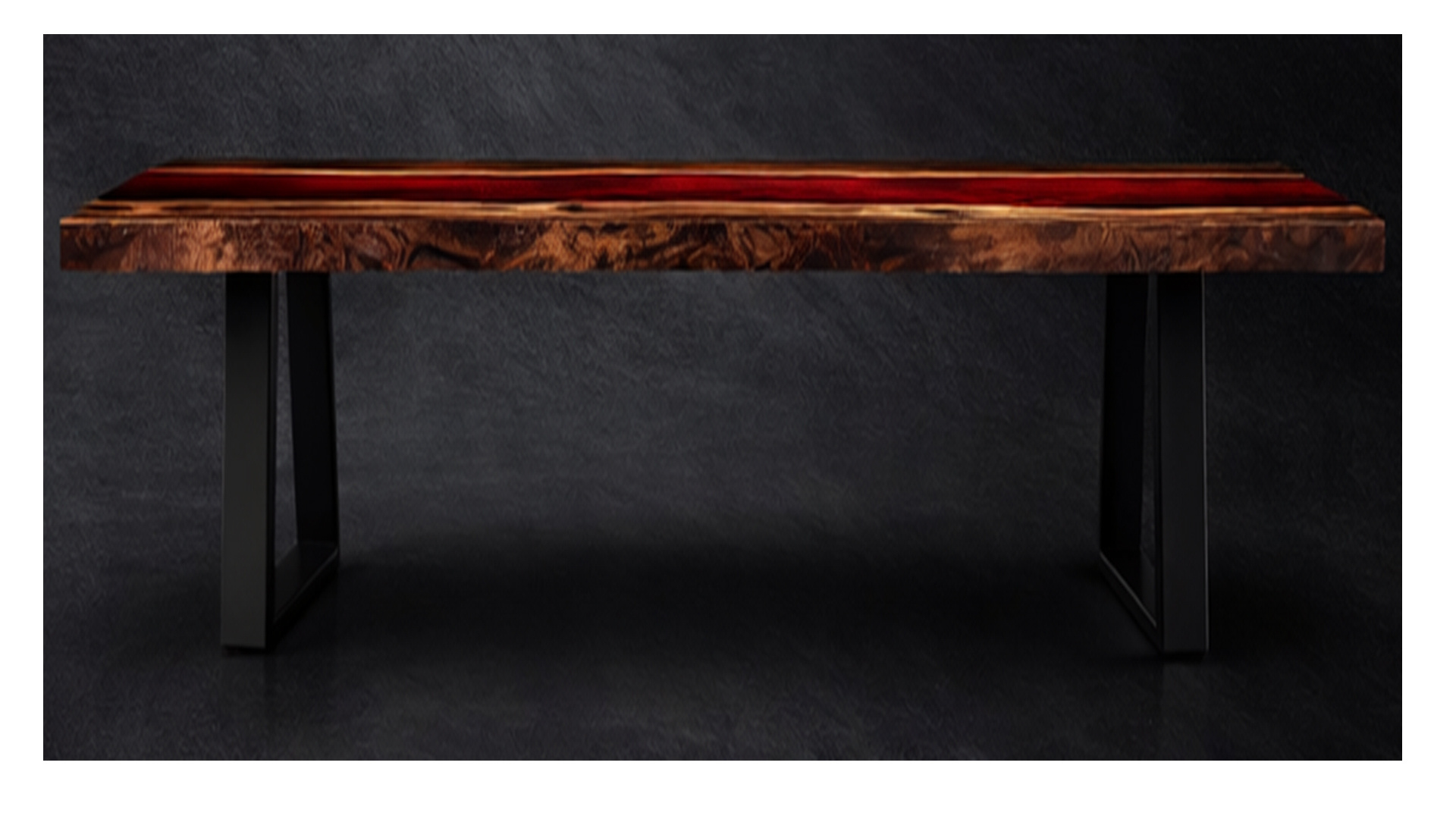 Finished to a flawless, glass-smooth surface and paired with strong matte black metal legs, the Crimson River table commands attention while offering uncompromising durability for everyday dining and entertaining. Each piece is handcrafted, ensuring no two tables are ever exactly alike.